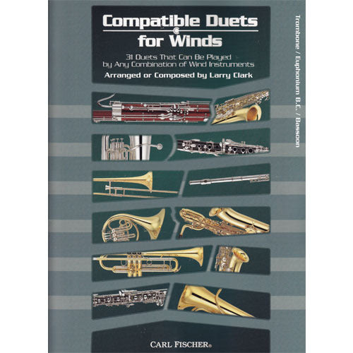 These invaluable collections contain 31 duets in a variety of styles (classical, folk music, new original pieces) that can be played with any combination of two wind instruments. Students can develop their chamber ensemble skills while playing with their friends, no matter what instruments they play. Ranging from grade levels 2-3, Compatible Duets for Winds is perfect for band directors to buy for use in the classroom, and its flexibility makes it a must-have for any wind player.