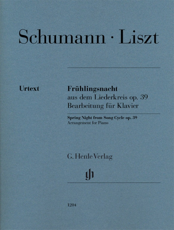 Robert Schumann’s "Frühlingsnacht" ("Spring night") was one of his most popular songs even in the 19th century. Franz Liszt made a piano arrangement of it that in the space of under 70 measures emerges as a veritable concert piece. It makes high demands on the pianist’s stamina, especially in its triplet chords. But this did not hinder its wide popularity. The first edition was published in 1872 and enjoyed many reprints during Liszt’s lifetime. In 1895, this piece was also republished in a newly engraved edition. With its abundant technical indications, assorted ossias and the incorporation of the text of the poem above the music, Liszt’s arrangement makes the highest demands on a music engraver – a challenge that this Henle Urtext edition is delighted to meet.