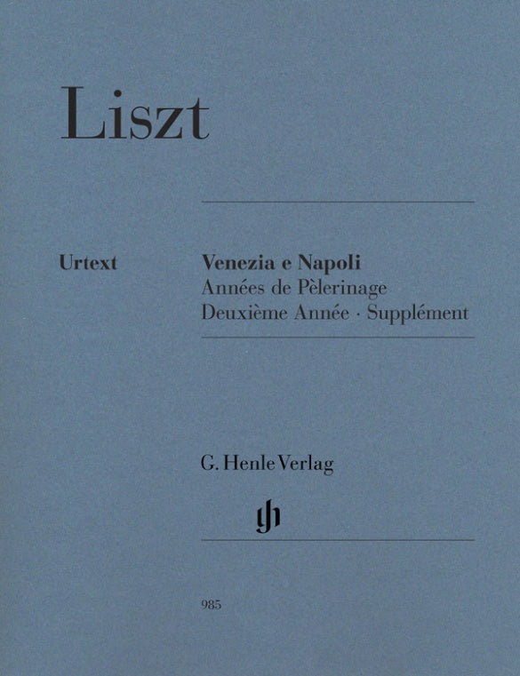 About three years after the publication of the second volume of his “Années de Pèlerinage” (Italy), Liszt added a supplement to this collection: the triptych “Venezia e Napoli”. For this he reworked two of four pieces which he had already composed in 1840 after a journey to Italy, grouping them around an adaptation of the gondola song “Nessun maggior dolore” from Rossini’s “Otello”. It is diffi cult to imagine the piano repertoire without the furious “Tarantella” in particular, which brings this supplement to a close after the two rather lyrical pieces “Gondoliera” and “Canzone”. With the publication of this supplement all works pertaining to the “Années de Pèlerinage” are now available in Henle Urtext.