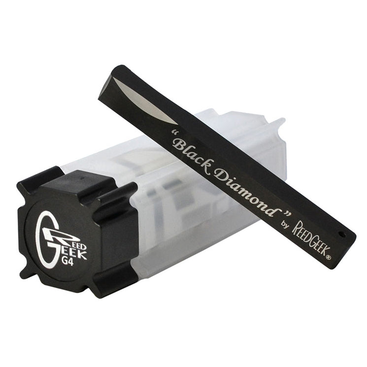 The G4 is the newest member of the ReedGeek Universal family. It utilizes state of the art, 100% USA alloy with very high vanadium carbide content for exceptionally good wear resistance. With our beautiful “Black Diamond” wear finish fostering a smooth “buttery” glide to the cut, the G4 excels on both natural cane and all synthetic reeds. Exciting features include a newly designed length with a comfortably rounded back scraper (for further adjustment options), a radius tip for precision work and two contoured and curved rail bevels (specially designed to profile rails and re-contour the spine & heart of both single and double reeds). With advanced profiling abilities such as these, the G4 is a must for every serious reed player!
